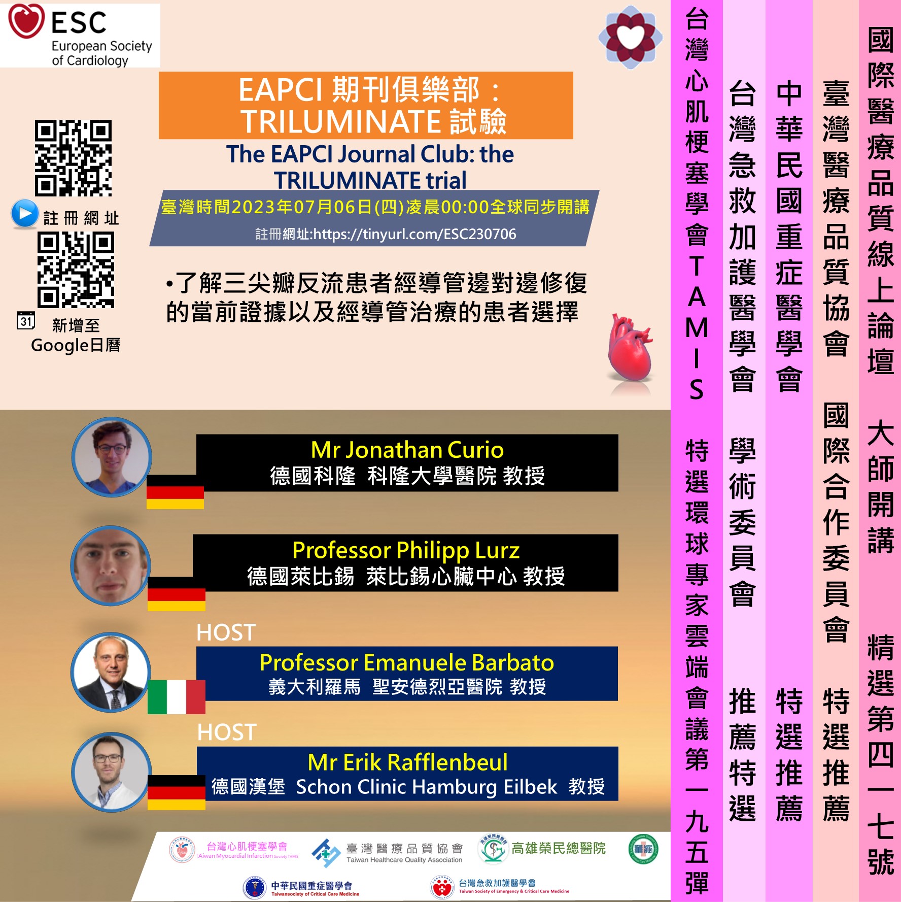 讓歐洲心臟醫學會專家告訴您 EAPCI 期刊俱樂部:TRILUMINATE 試驗 最新資訊!