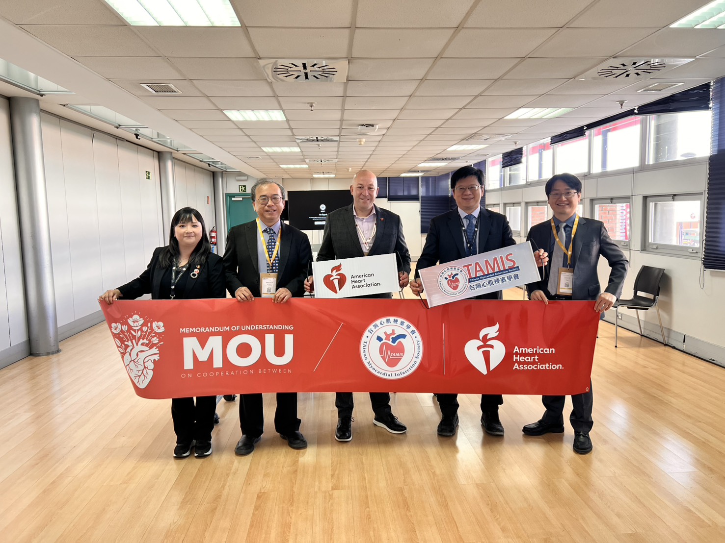 根據台灣心肌梗塞學會理事長暨台北醫學大學附設醫院副院長黃群耀教授表示為提升急性心肌梗塞及胸痛病患的照護品質,台灣心肌梗塞學會與美國心臟學會(American Heart Association, AHA)2025年8月31日於西班牙馬德里正式簽署胸痛中心合作備忘錄(Memorandum of Understanding, MOU)。此舉象徵雙方將攜手建立跨國合作模式,推動胸痛中心的建置與臨床指引標準化,提升病患急診處置效率與存活率。
